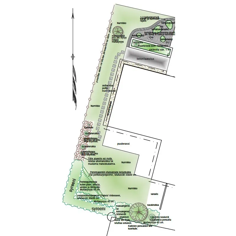 Jokainen suunnittelutyö on erilainen ja lähtee paikan ominaisuuksista ja asiakkaan toiveista. Suunnitelmasta selviää mm. puutarhan muodot, toimintojen sijoitukset, kasvit, kasvimäärät, istutusetäisyydet, pintamateriaalit ja valaisimien paikat.